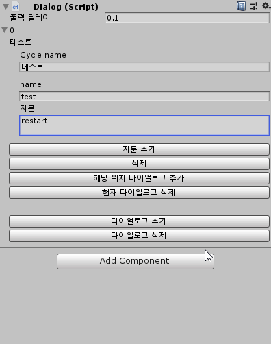 조건이 있다. dialog_system_start가 코루틴이기 때문에 기본으로 진행되는 코루틴에만 삽입이 가능하다. 예를 들어 설명하겠다. 타이머를 만들어서 100부터 0까지 감소시킬 것이다. 그 중간에 90이 되는 순간에 대화로 일시정지하도록 하겠다. 또한 60초에 다음 대화 그룹을 출력하겠다.