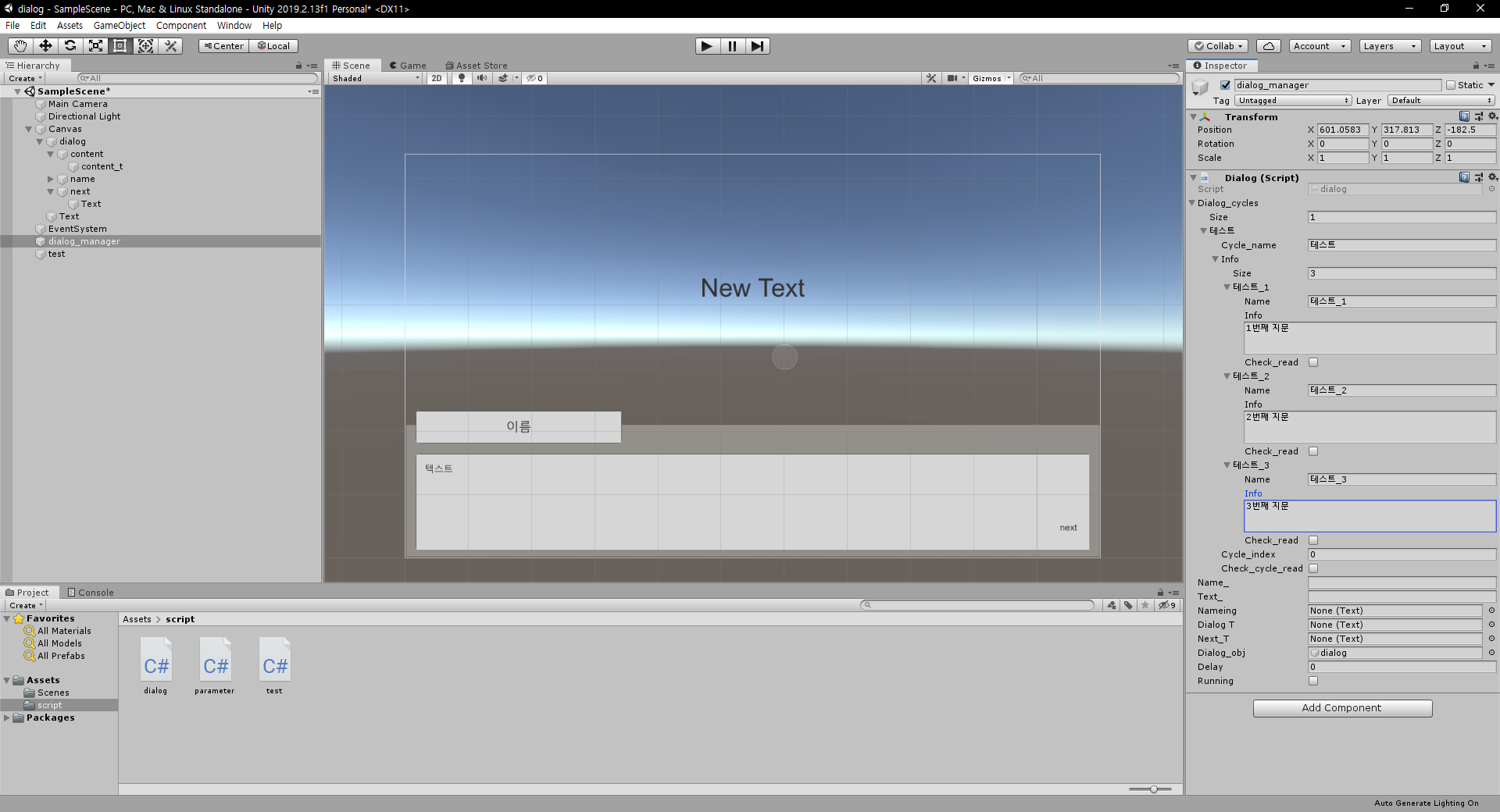게임을 만들다 보면 자연스럽게 만들어야되는 부분이 다이얼로그(대화창)이다.