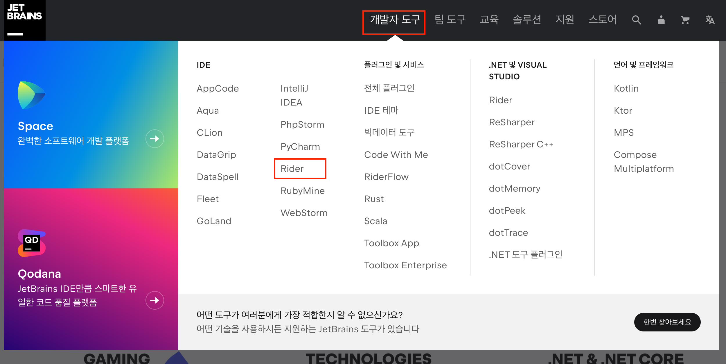 rider는 C# IDE로 저는 Unity 에 연동해서 편집기로 사용하기 위해 설치하고 이용하고 있습니다. 여러모로 다양한 기능이 많고 쓸만한 플러그인이 제공됩니다.