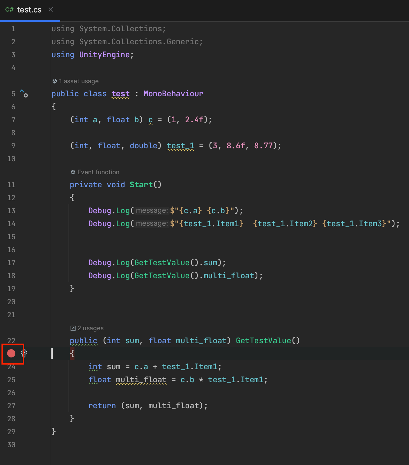 이렇게 원하는 지점에서 디버깅을 통해 데이터들이 의도대로 계산되는지 확인하고 오류를 잡아낼 수 있습니다. 항상 나타나지 않는 오류들은 곳곳에 도사리고 있으니 디버깅을 통해 슬기롭게 잡아가시길 바랍니다! 지금까지 간단하게 라이더로 unity 디버깅하는 방법에 대해 알아보았습니다. 더 다양한 디버깅 관련된 기능들이 있으니 디버깅 진행하시면서 더 알아가시면 좋을거 같습니다. 감사합니다!