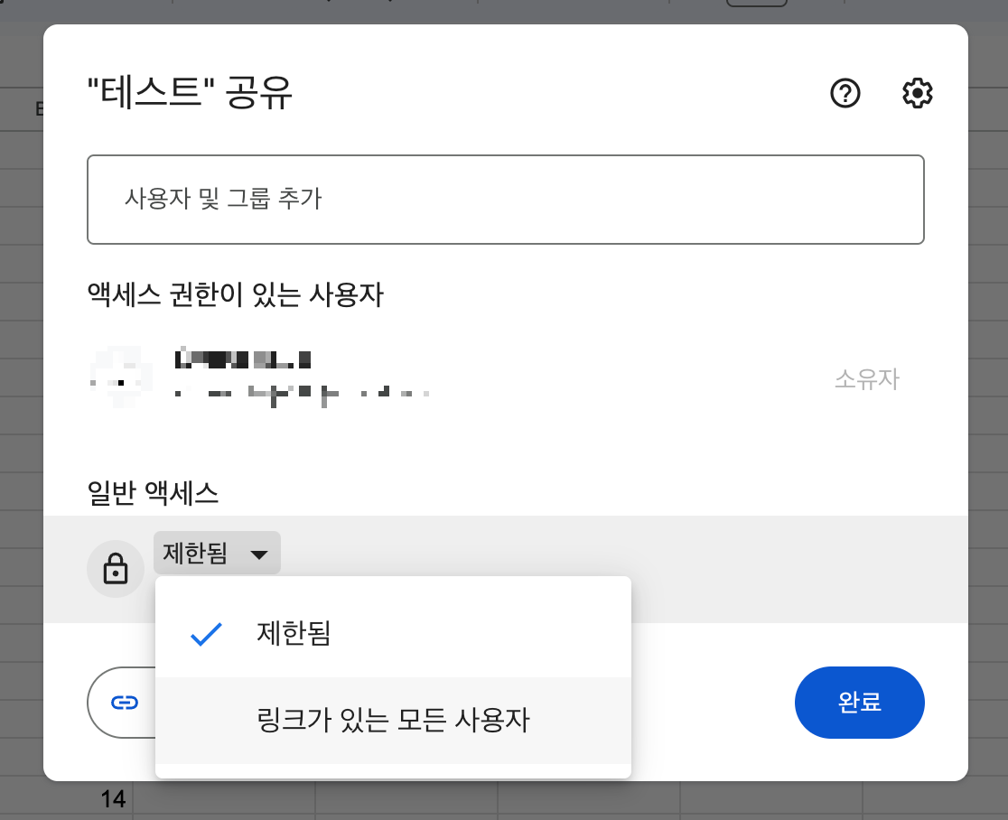 일반 엑세스에서 링크가 있는 모든 사용자를 눌러주면