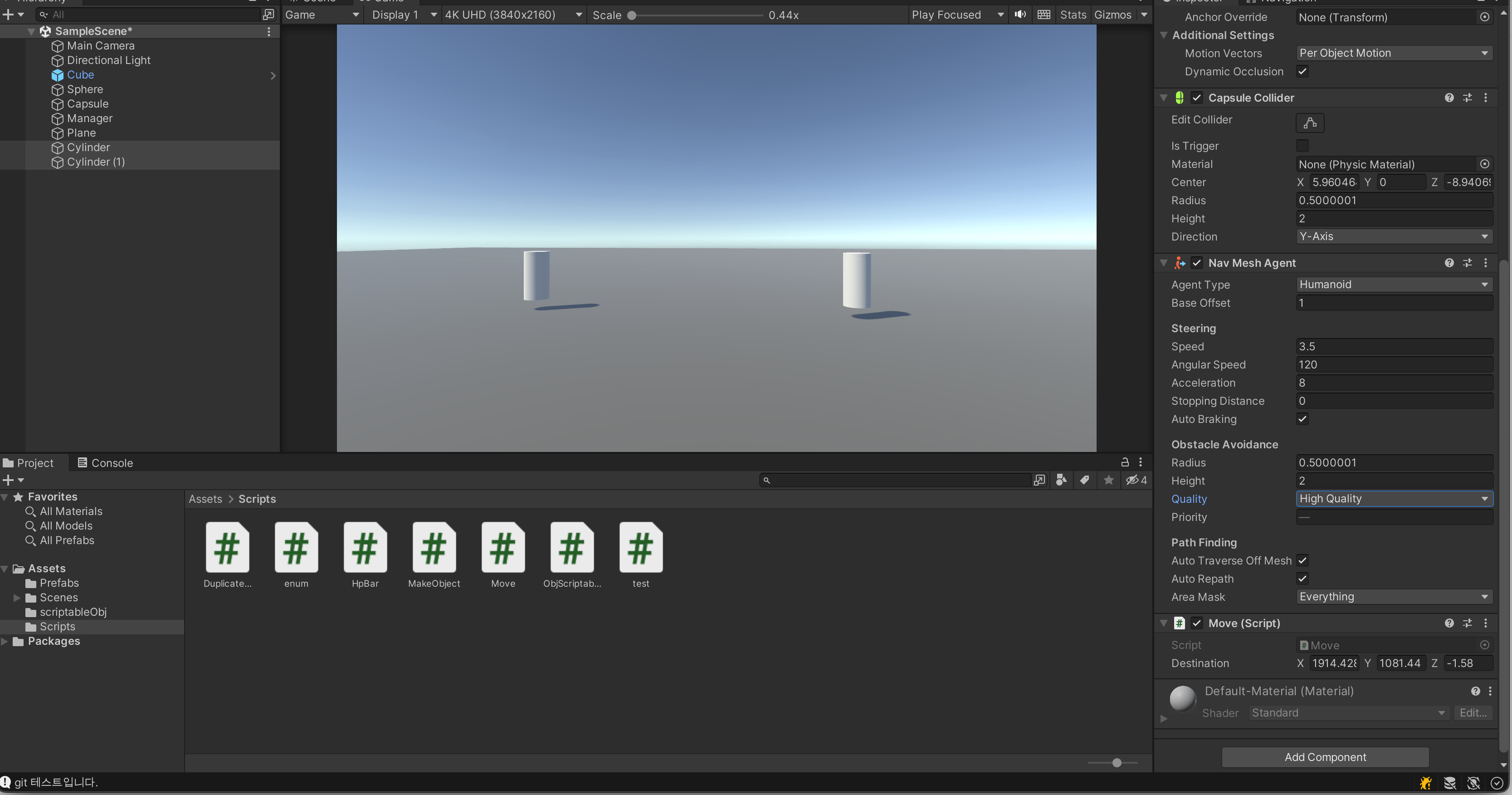 안녕하세요! 오늘은 NavmeshAgent를 가진 오브젝트끼리 충돌을 하지 않게 하는 방법에 대해 알아보겠습니다.