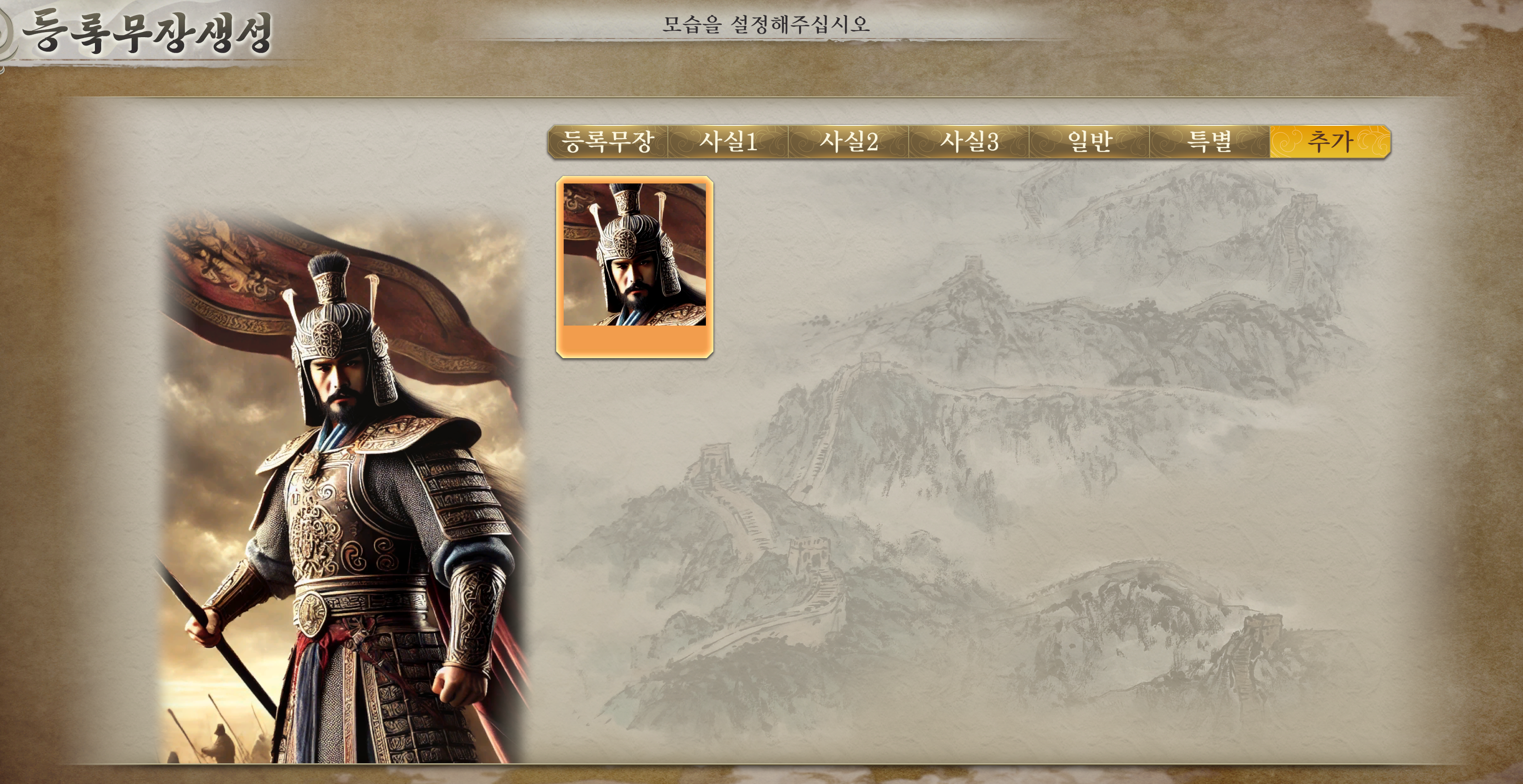 저장 후에 이렇게 등록 무장 생성에서 이미지가 출력되면 완료입니다.