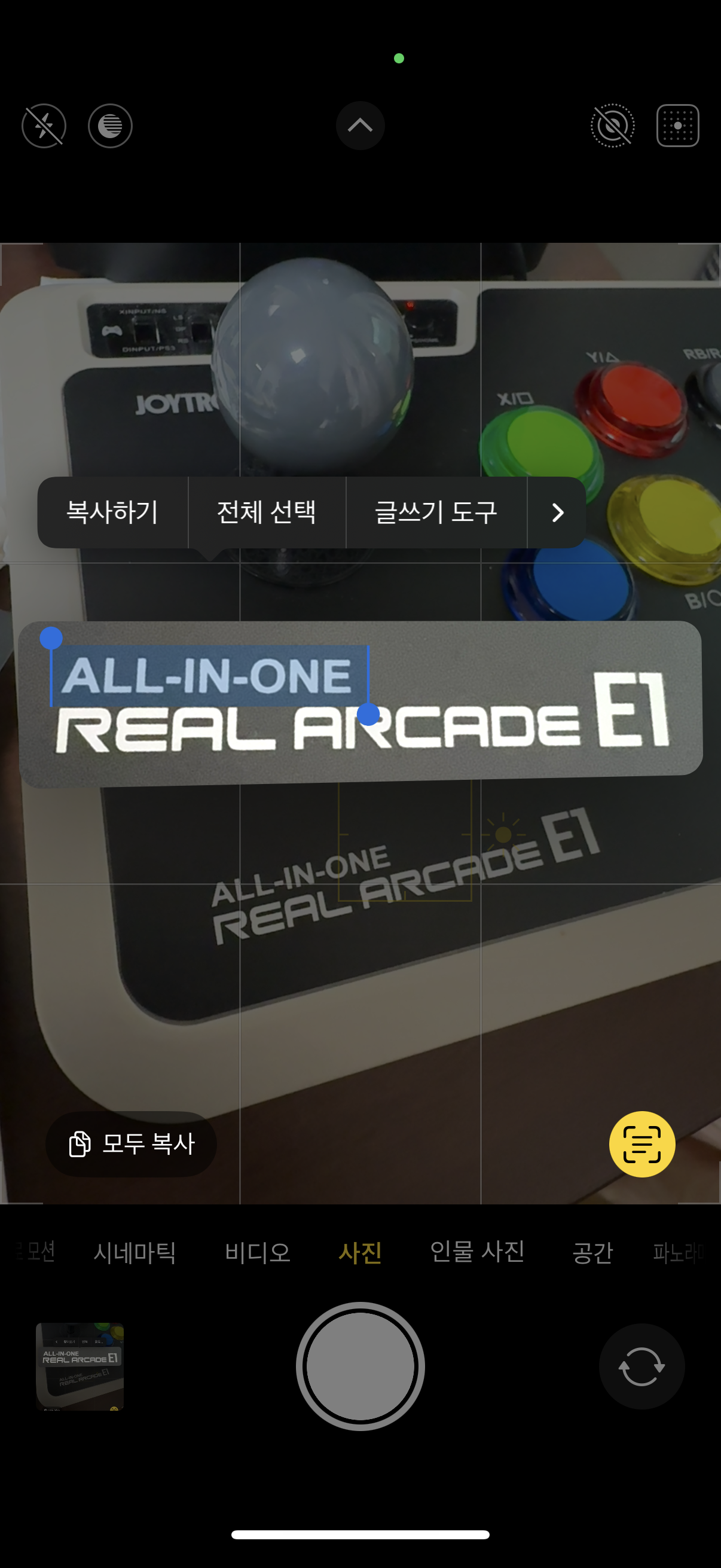 텍스트처럼 복사하거나 검색, 번역, 전화 걸기 등이 가능하게 해주는 기능입니다.